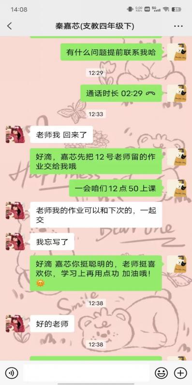 志愿者们在课前课后积极与同学们交流,从课前预习,到课后作业的讲解,他们细心嘱托,耐心教导。志愿者们还经常鼓励同学们,给他们自信,让孩子们在快乐中学习。在课后作业方面,及时和家长沟通,一起寻找最适合孩子的学习方法。在一次次的沟通之中,大家熟悉彼此,共同成长。
