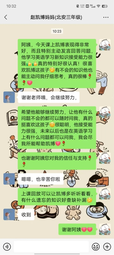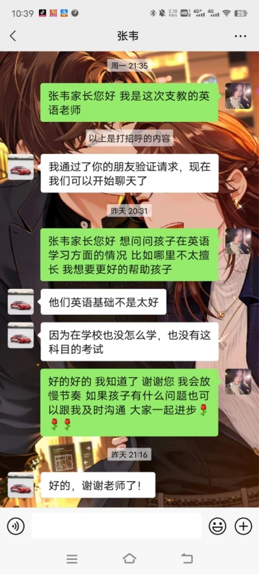 在年前志愿者们经历了一段时间的支教活动,对现阶段的支教任务可谓是得心应手。志愿者们知晓应如何做好课前的准备工作,更知晓如何与家长和孩子沟通。志愿者们在收到支教活动开始的通知时,立刻着手联系员工家长,确认上课时间以及教材版本,为给孩子们一节妙趣横生的课堂而做了充足的准备。本次支教活动于2月1日正式开始,这将成为志愿者们的宝贵经验,为志愿者们日后从事教育事业奠定了良好的基础。
