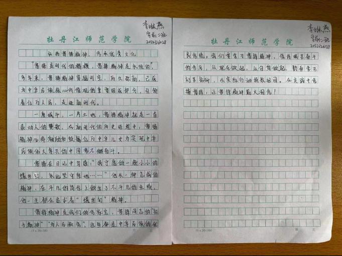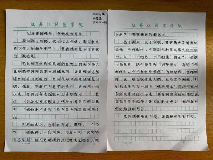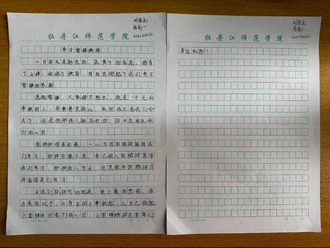 弘扬雷锋精神,感悟榜样力量。今年的3月5日是第60个学雷锋纪念日,50多年来,学雷锋活动蓬勃开展、长盛不衰,人民群众热情响应、广泛参与,雷锋精神的光芒愈加耀眼夺目,凝聚起推动民族奋进发展的磅礴力量。习近平总书记强调,雷锋是时代的楷模,雷锋精神是永恒的。实现中华民族伟大复兴,需要更多时代楷模。特此,我院团总支组织部开展了以“学习雷锋精神,赓续时代光芒”为主题的每周一论。下面让我们欣赏本周的优秀论文。