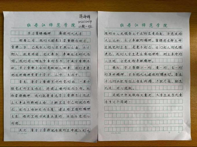 2022级小学教育一班贺佳同学和蒋海婧同学观点鲜明,语言准确,文笔流畅,作品如下: