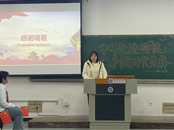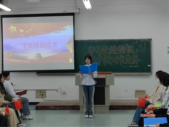 三月春风处处暖,雷锋日伴随惊蛰天悄悄来临。几十年来,雷锋精神犹如春日花香般扑鼻西来,钻入人们心中,芬芳四溢。为引领广大团员青年在新时代新征程上,从雷锋精神中汲取营养,使雷锋精神绽放新的光彩,为实现中华民族伟大复兴提供更加有力的精神力量,我院2022级心理一班于2023年3月17日13:00在综合楼525开展以“学习先进楷模,争做时代先锋”为主题的团日活动,公司辅导员朱佳慧老师、团总支副书记王子瑞参加了本次活动。