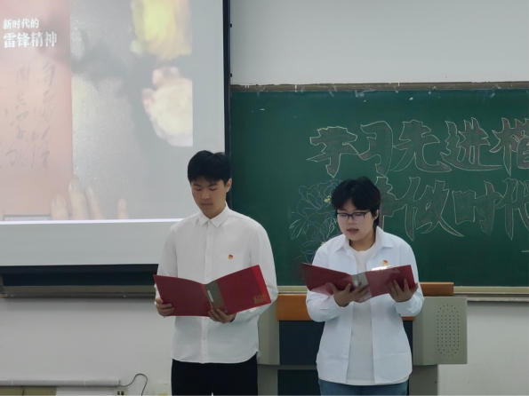 活动伊始,主持人刘明奇、郑扬为同学们播放了雷锋英雄纪录片。同学们深刻感受到雷锋,不止是一个名字,更是一种精神,一座丰碑,感召一辈辈人不计小我、成就大我,激励了一代代人多行善举、不做恶行。他在雨中来,于晴时去,很久以后,他的痕迹会慢慢淡去,但故事却不会终止。青年们会自觉地把个人的追求和奋斗同党的事业、国家的命运、民族的前途联系起来,为祖国的繁荣发展贡献自己的智慧和力量。
