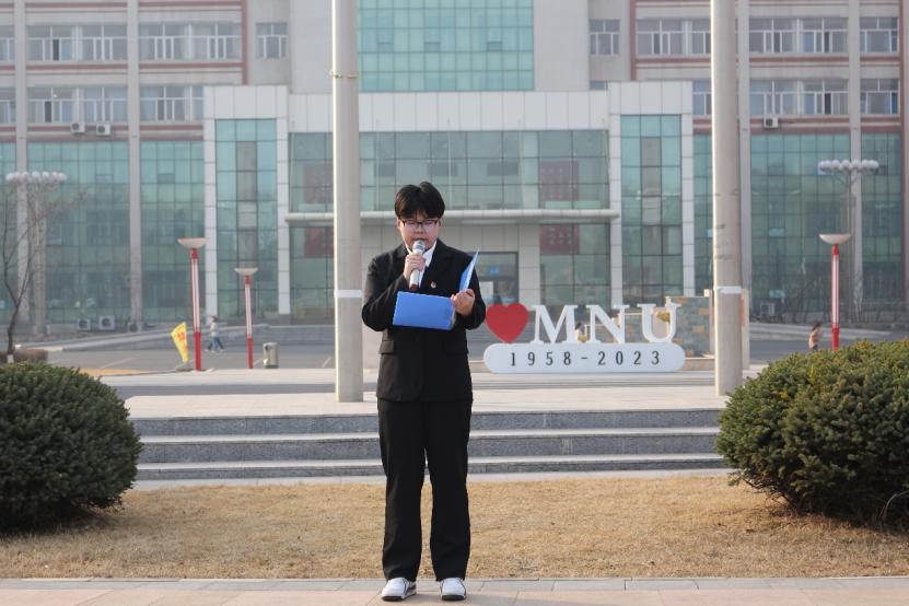 礼毕。由2022级员工代表郑扬同学进行以“生逢其时,重任在肩”为题的发言,郑扬同学明确青年应要培养积极乐观的人生态度,塑造苦干实干的务实作风,依靠辛勤努力,创造属于自己的人生精彩。让同学们深刻认识到青年一代有理想、有本领、有担当,国家就有前途,民族就有希望。今天的青年既是追梦者,也将是圆梦人,实现中华民族伟大复兴取决于一代代人的接续奋斗,时间与历史将选择站在奋进者一边。