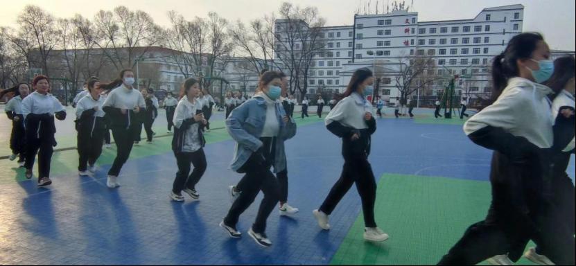 当新一轮的朝阳升起,当清晨的阳光铺满大地的四面八方,晨曦的微光中,同学们排着整齐的队伍,节奏一致地在阳光沐浴下奔跑,迈着矫健的步伐,伴随音乐在场地里挥洒汗水。响亮的口号,整齐的脚步声,无一不体现出属于青春少年的阳光与朝气。