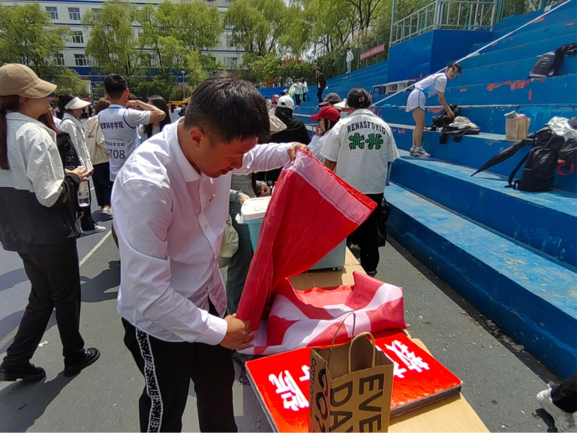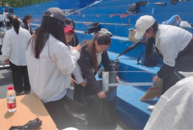 在闭幕式结束后,等待所有人员有序离场后,公司党员志愿者们相互配合,开始收拾场地,清理每一层台阶上的垃圾,收起一个个凳子,用实际行动践行党员的初心使命。